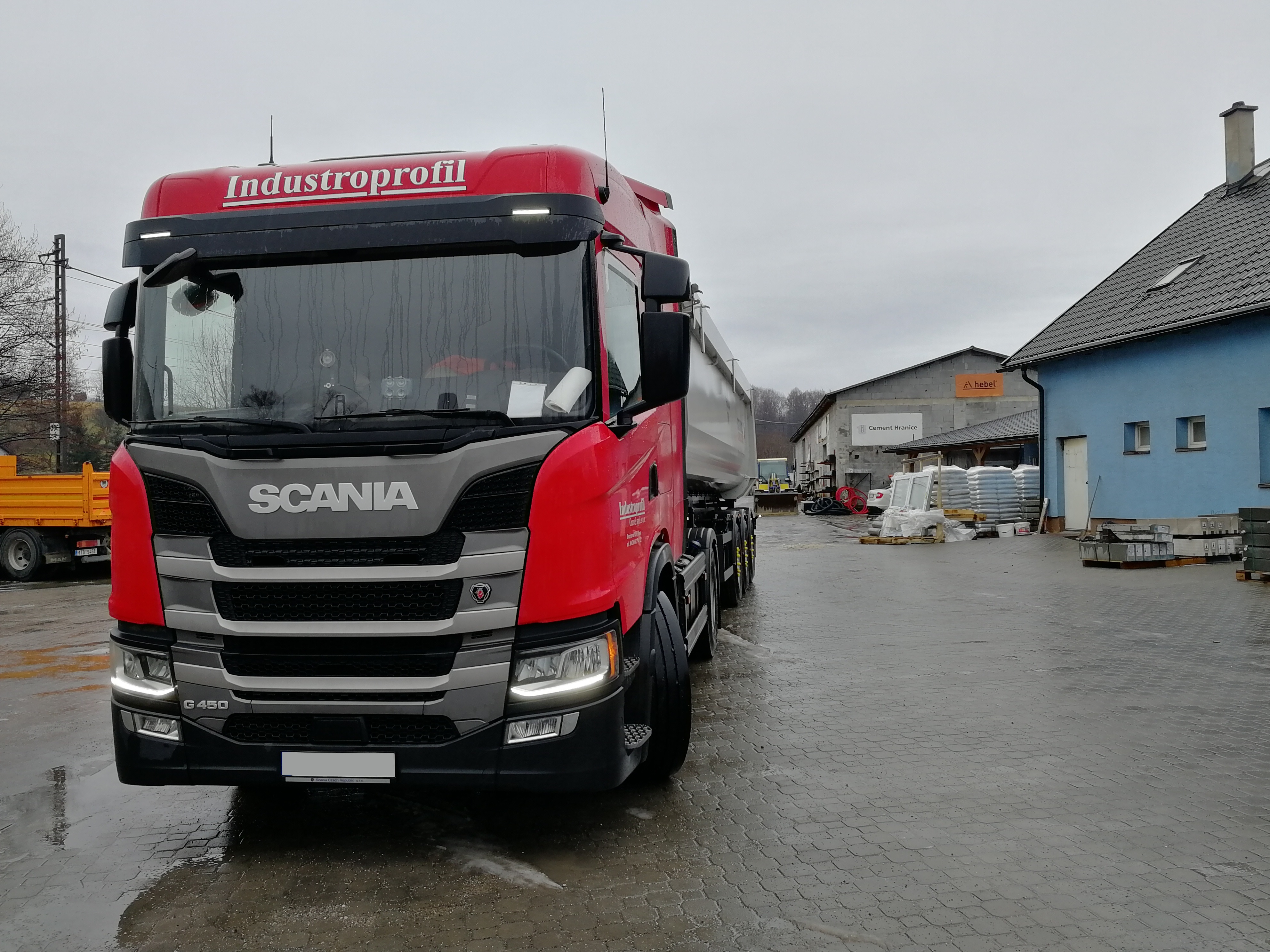 Dopravu realizujeme především vlastními sklápěcími návěsy s objemem 30–40 m³ (25–30 tun). Tím zajišťujeme rychlé a spolehlivé dodání přímo na místo určení.